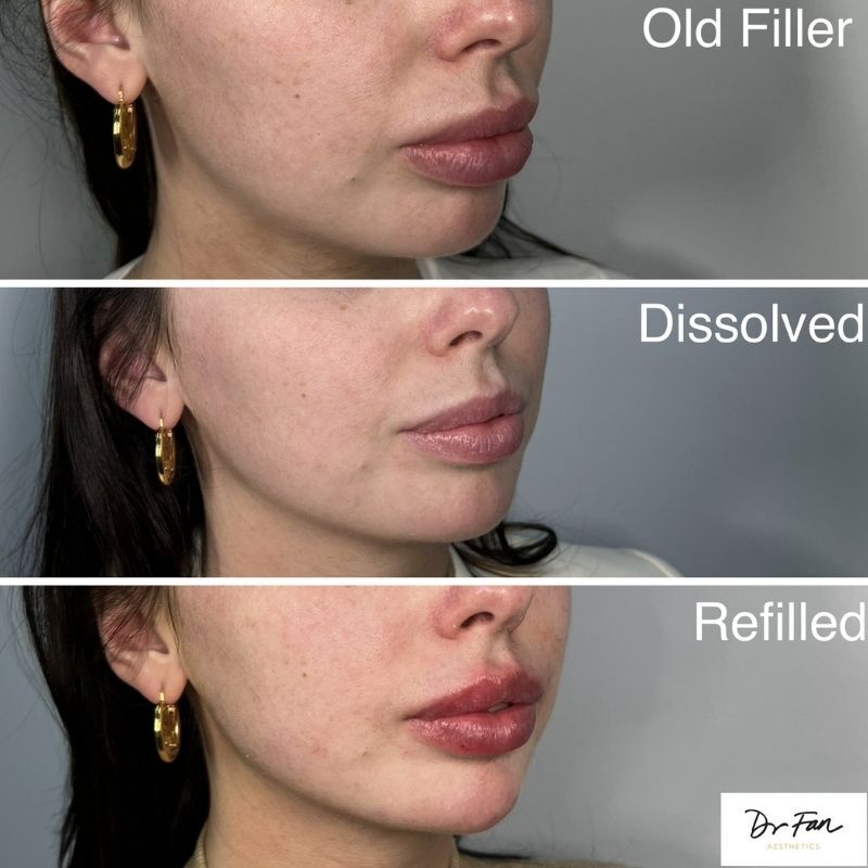 Filler correction is available for cases where existing filler has migrated, become uneven, or is no longer providing the intended aesthetic result. Hyaluronic acid–based fillers can be safely dissolved using hyaluronidase, an enzyme specifically designed to break down unwanted product with precision.